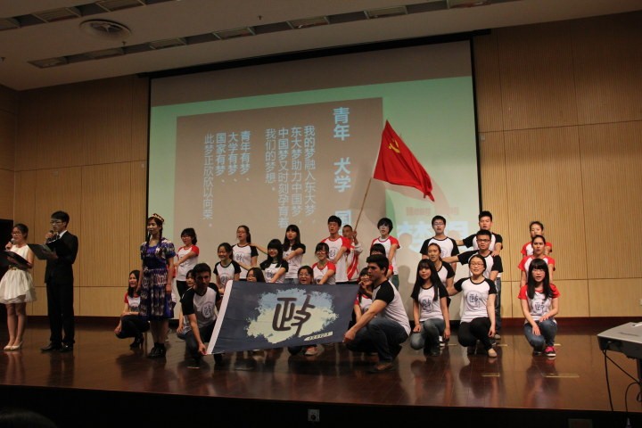 2014年4月28日晚上,东南大学润良报告厅,从全校800多个团支部中脱颖而出的10个优秀团支部为了争取团支部的最高荣誉——国旗团支部,接受来自学校各部门领导组成的评委老师以及各院系的团支部代表的公开检验。