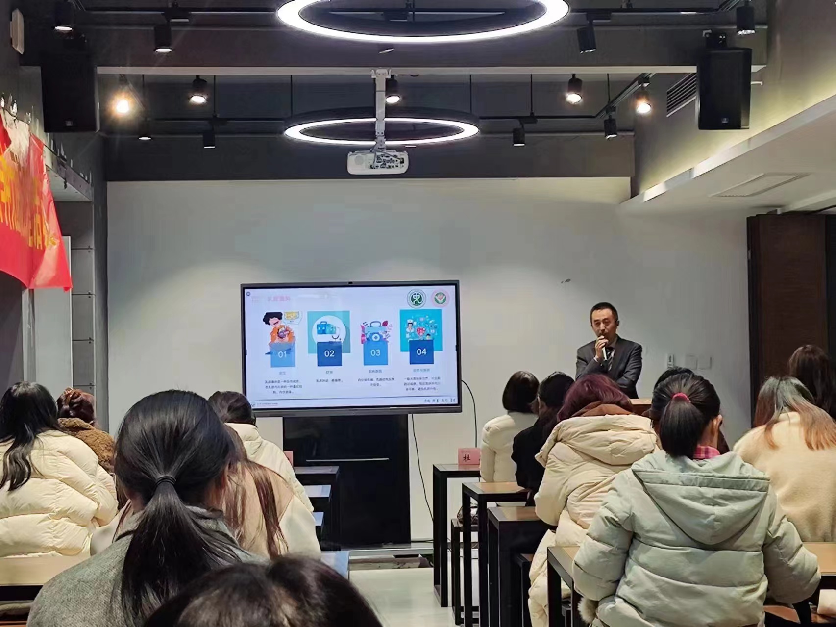 中大医院乳腺中心主任胡浩霖在秉文书院作了关于乳腺健康知识科普的精彩讲座,中大医院第二党总支书记杜恩、我院党委副书记高珺、俄罗斯贵宾会本科生辅导员张与竞、40余名师生等参加讲座。讲座中,胡浩霖聚焦女性乳腺健康,结合自身多年的临床实践经验,全方位多角度介绍了多种预防和治疗乳腺常见疾病的科学知识。